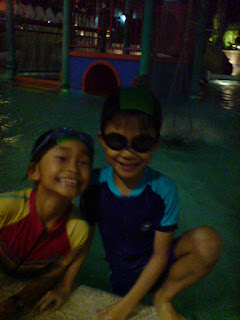 lil brother and sister went downstairs to play at the water-playground. instead of playing, i nearly dropped into the pool.