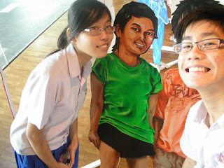 Artistic pictures ahead. plus super candidness! enjoy! Art Elective Programme Black and Whites. get it? it means meat that is chopped = pork chops, beans that are baked in the sun = baked beans. Professionally done. made of stones. 5 feet tall. this is the best of them all. grungy and full of angst. i like this one of the 3. i identified some balance and equilibrium in the picture. colour combination wad awesome too. this unlike the others is rather neat. the below 3 comes in a series of 4. creative idea but a tad too simple for an O level work. they are just amazed by the painting. haha.
